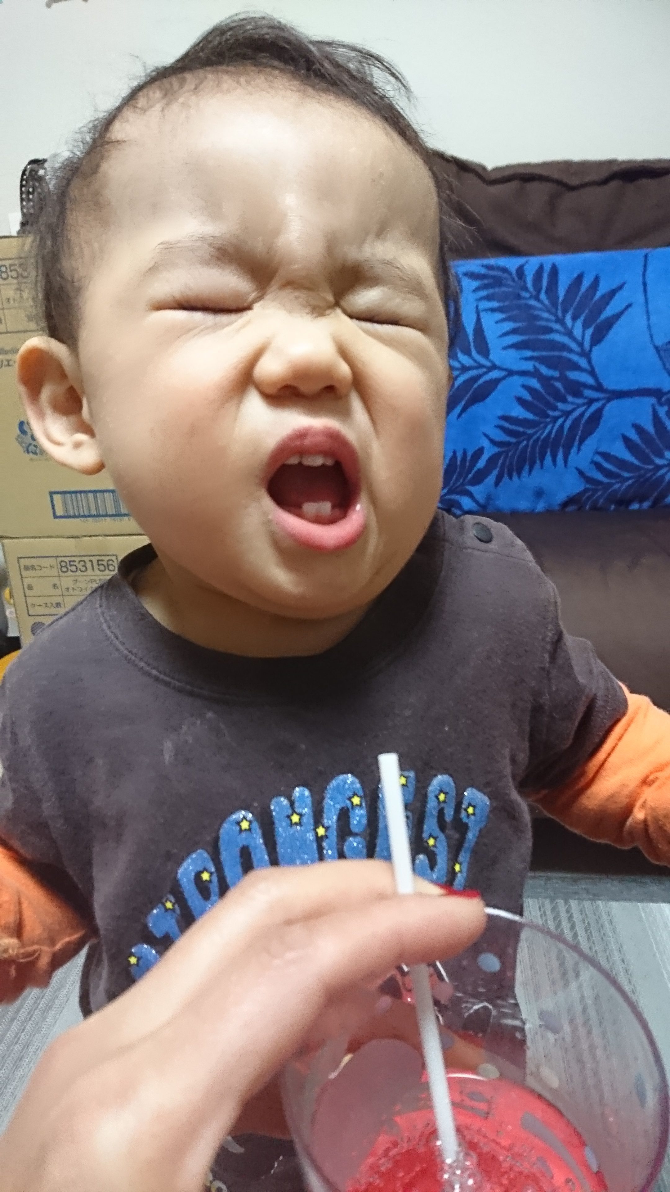 初めてのサイダーをひと舐めしてこの表情。