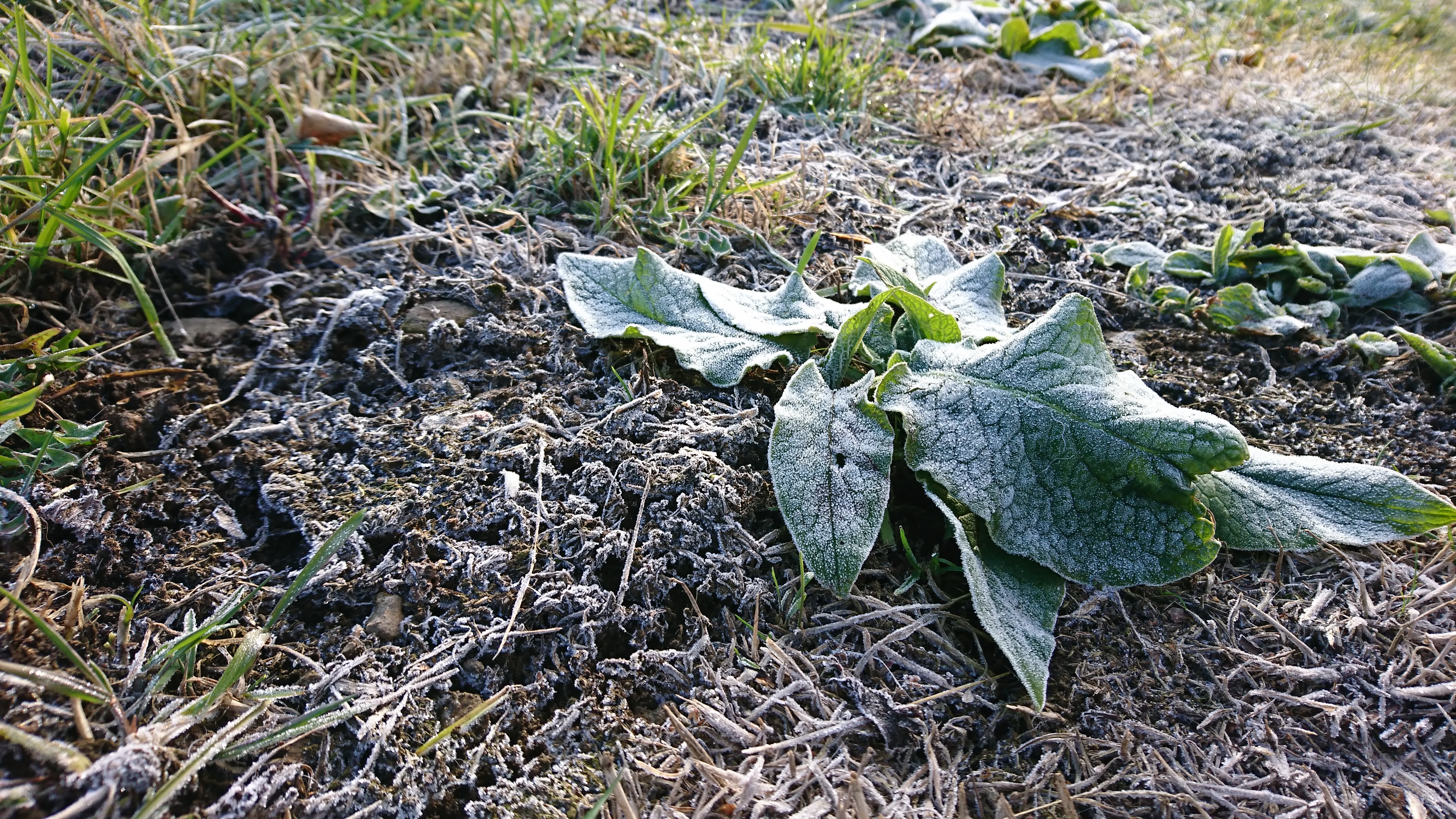 朝、カイの散歩に出た時に草が凍みてました~♪