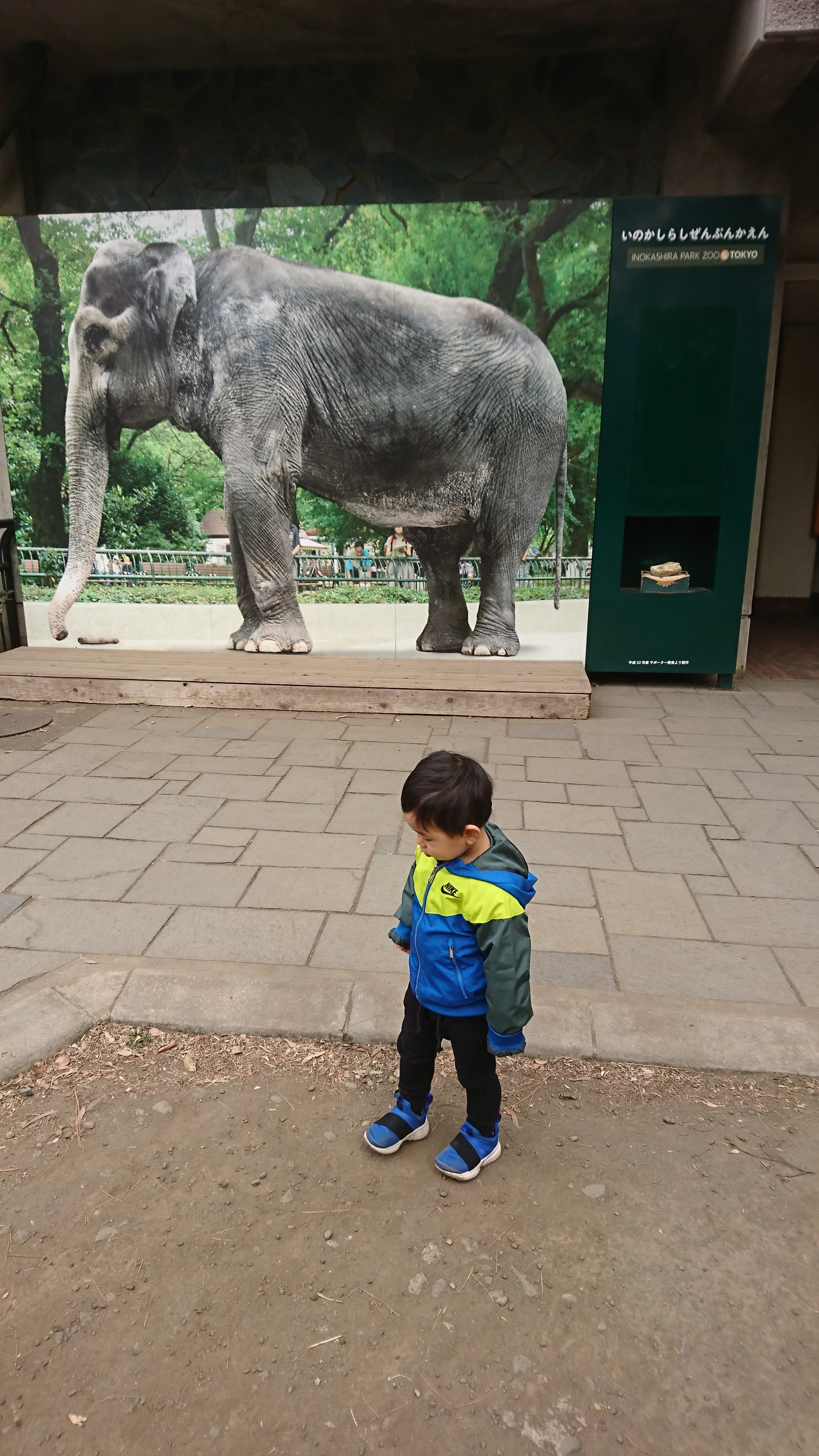 碧人が好きなライオンやトラやキリンはいないけれど、ゾウのはなこの写真と厩舎を見て満足できたようでした♪