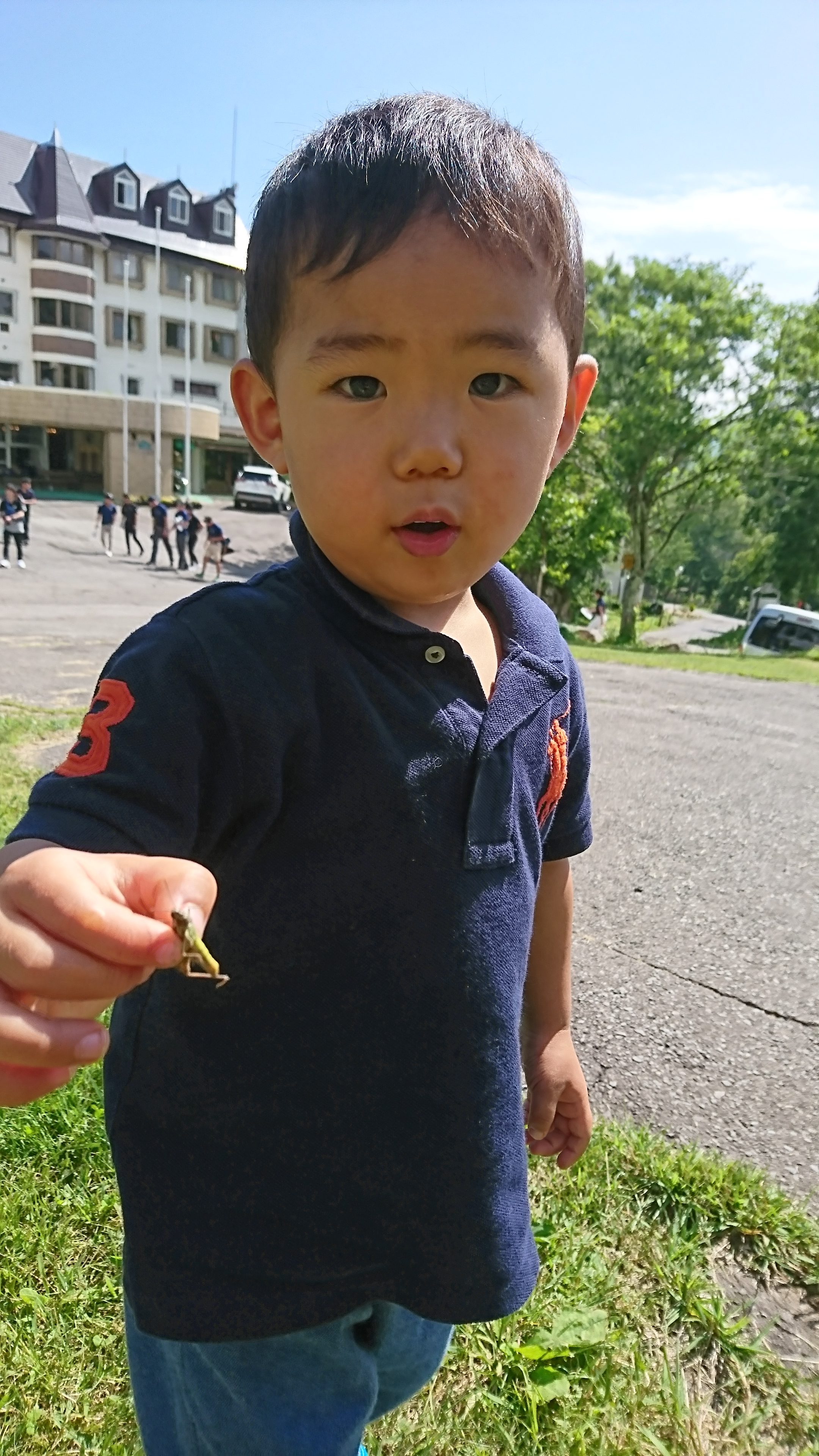 バッタを初めて持ってご満悦♪