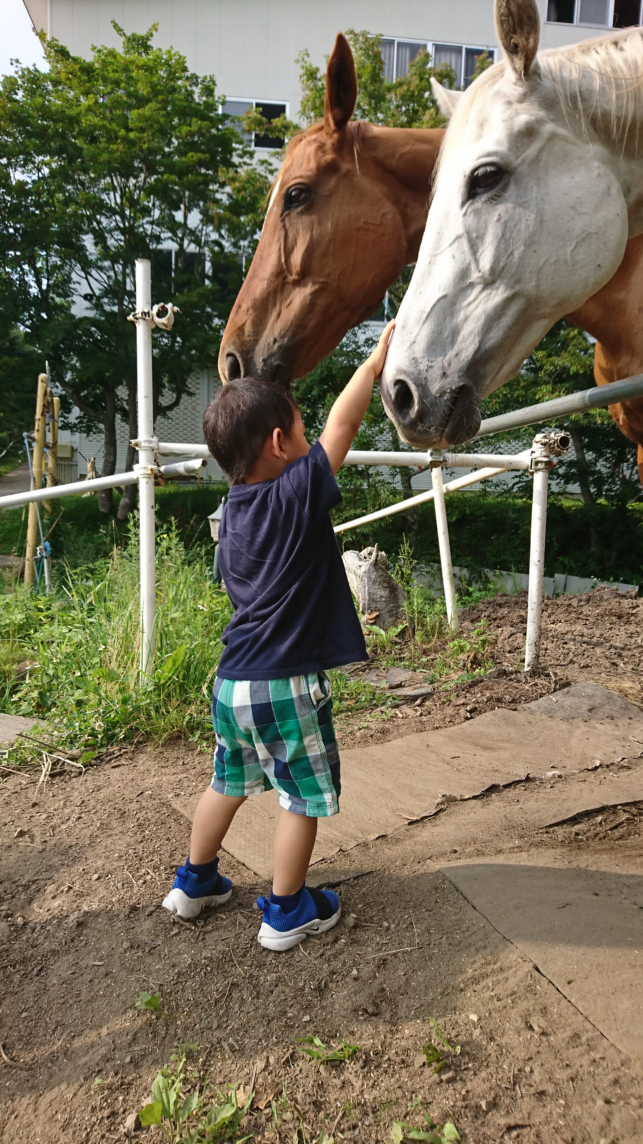 菅平に着いてからは外で遊ぶ♪ 馬にも帰ってきた挨拶をして♪