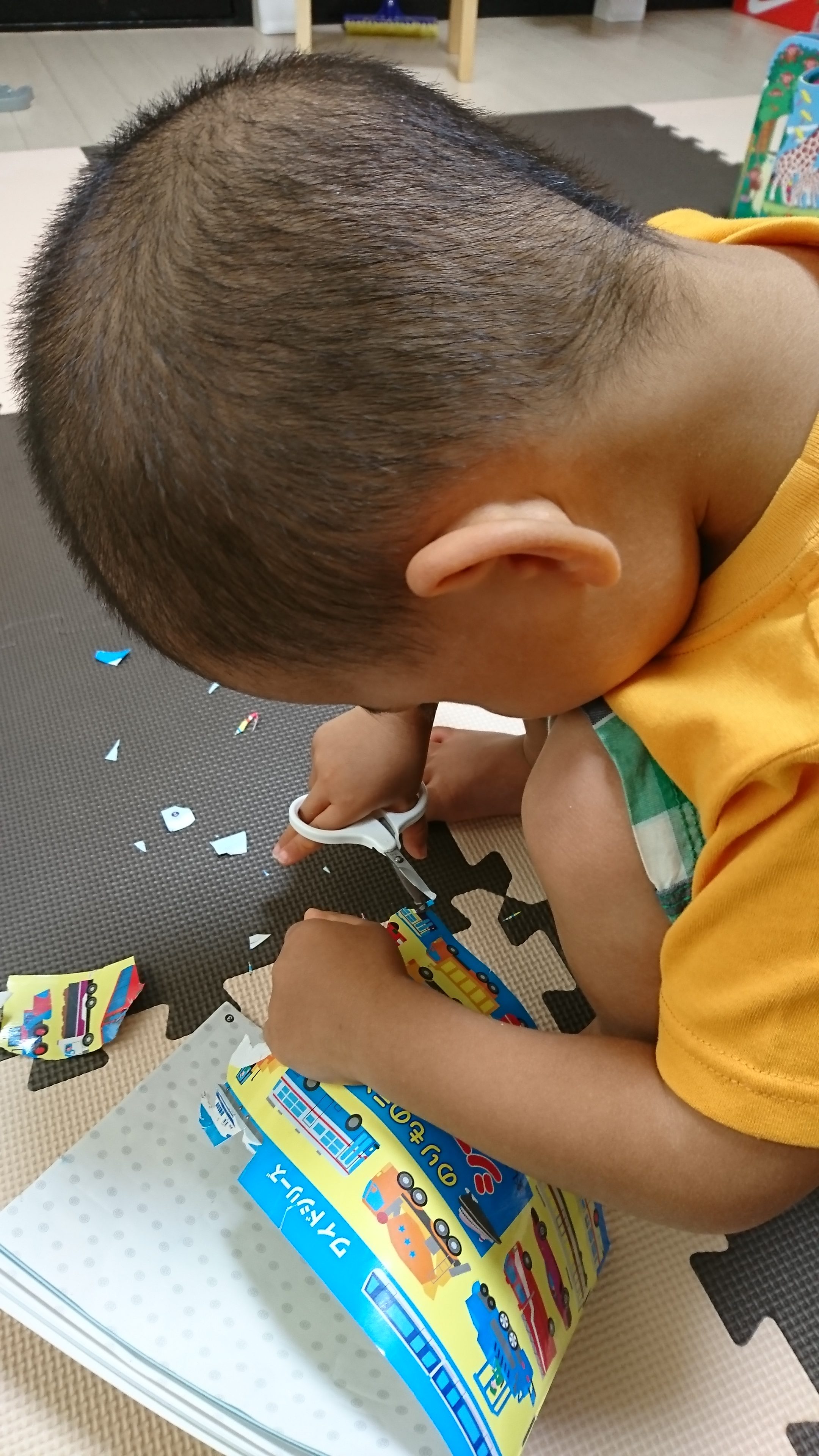 最近、ハサミを使えるようになったのが嬉しいのか何でも切りたがり…