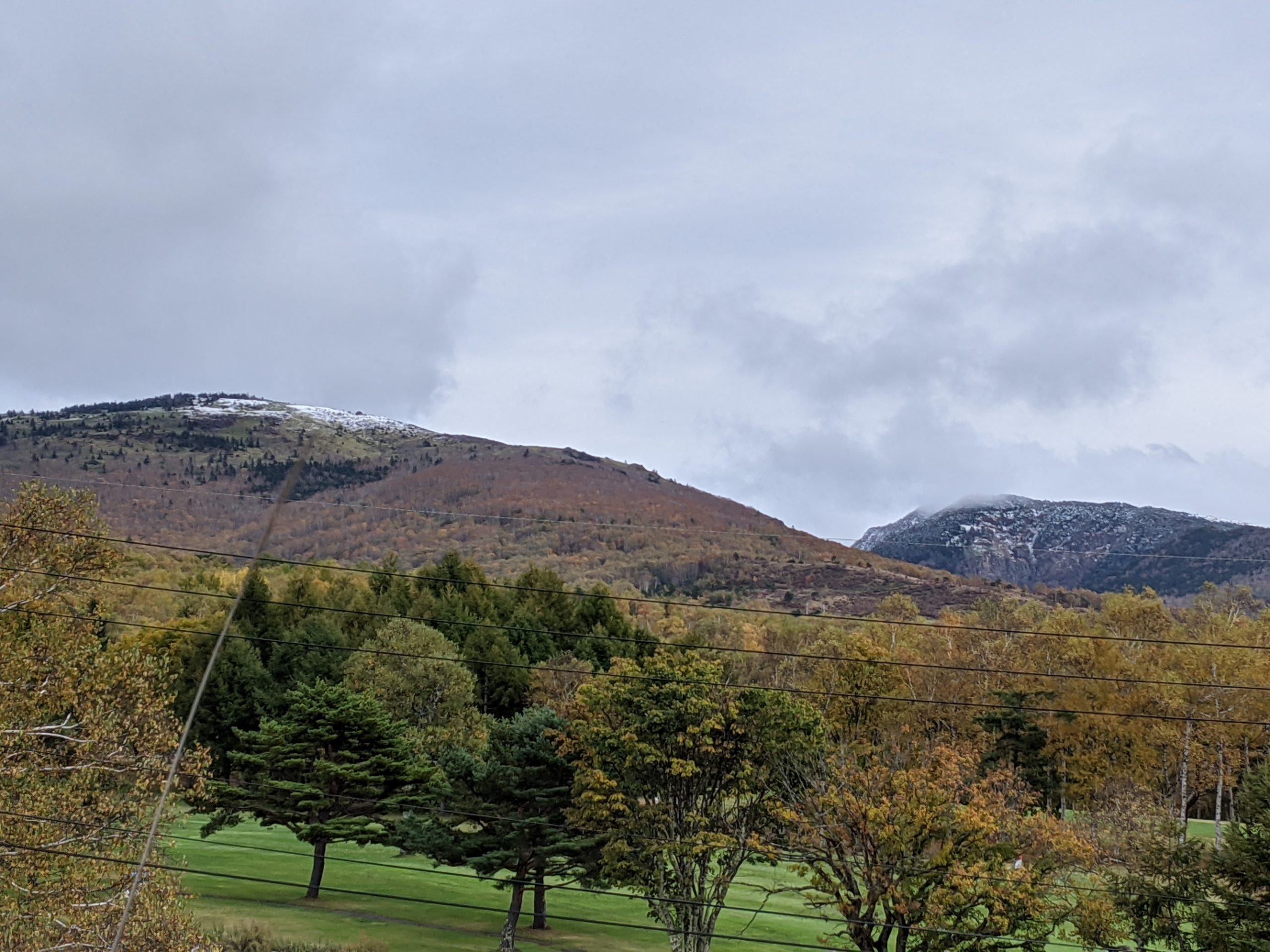 根子岳、四阿山の山頂付近が白くなっていましました😀