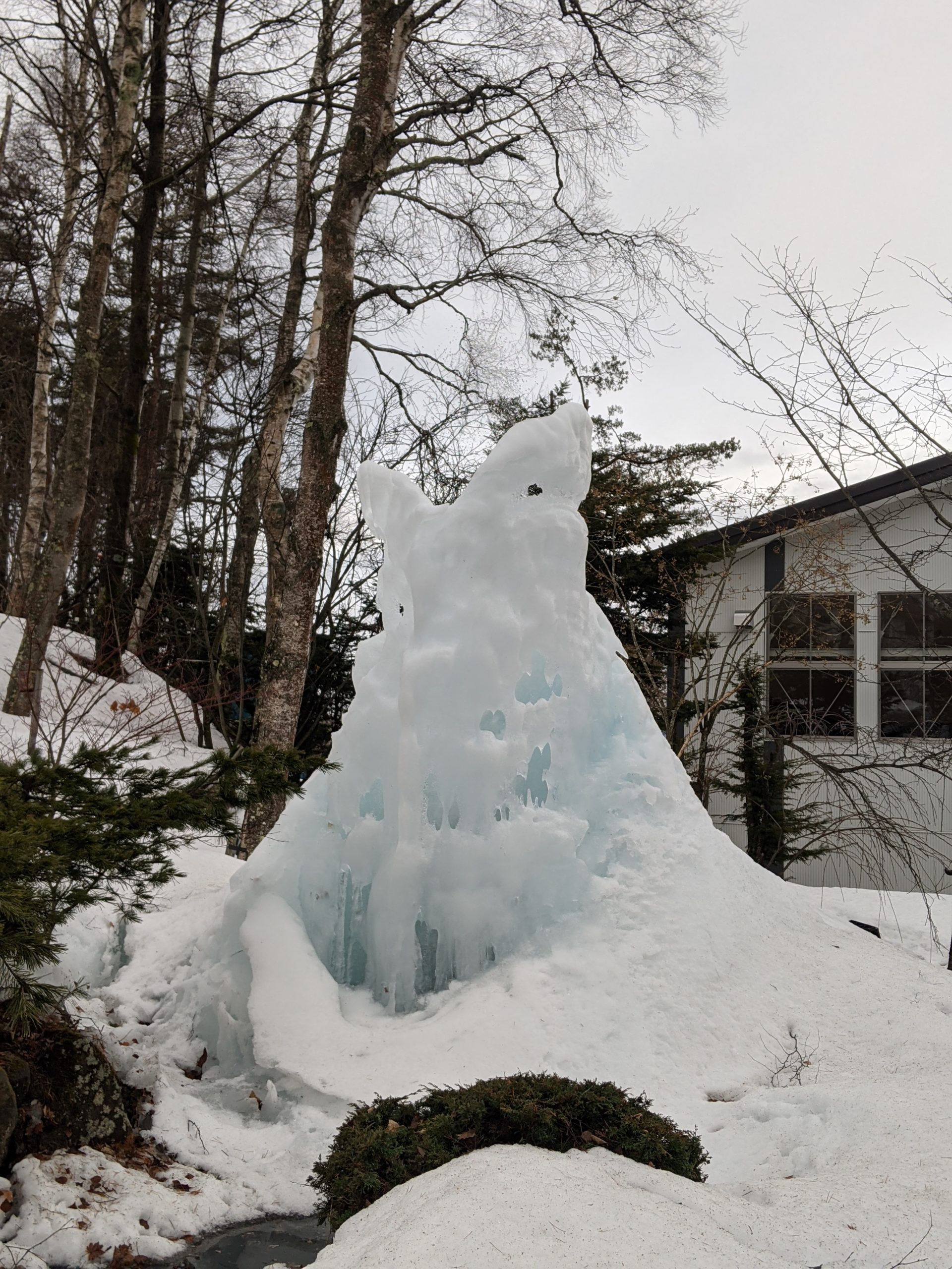 菅平プリンスの坂のところにある氷柱が恐竜に見えました😄