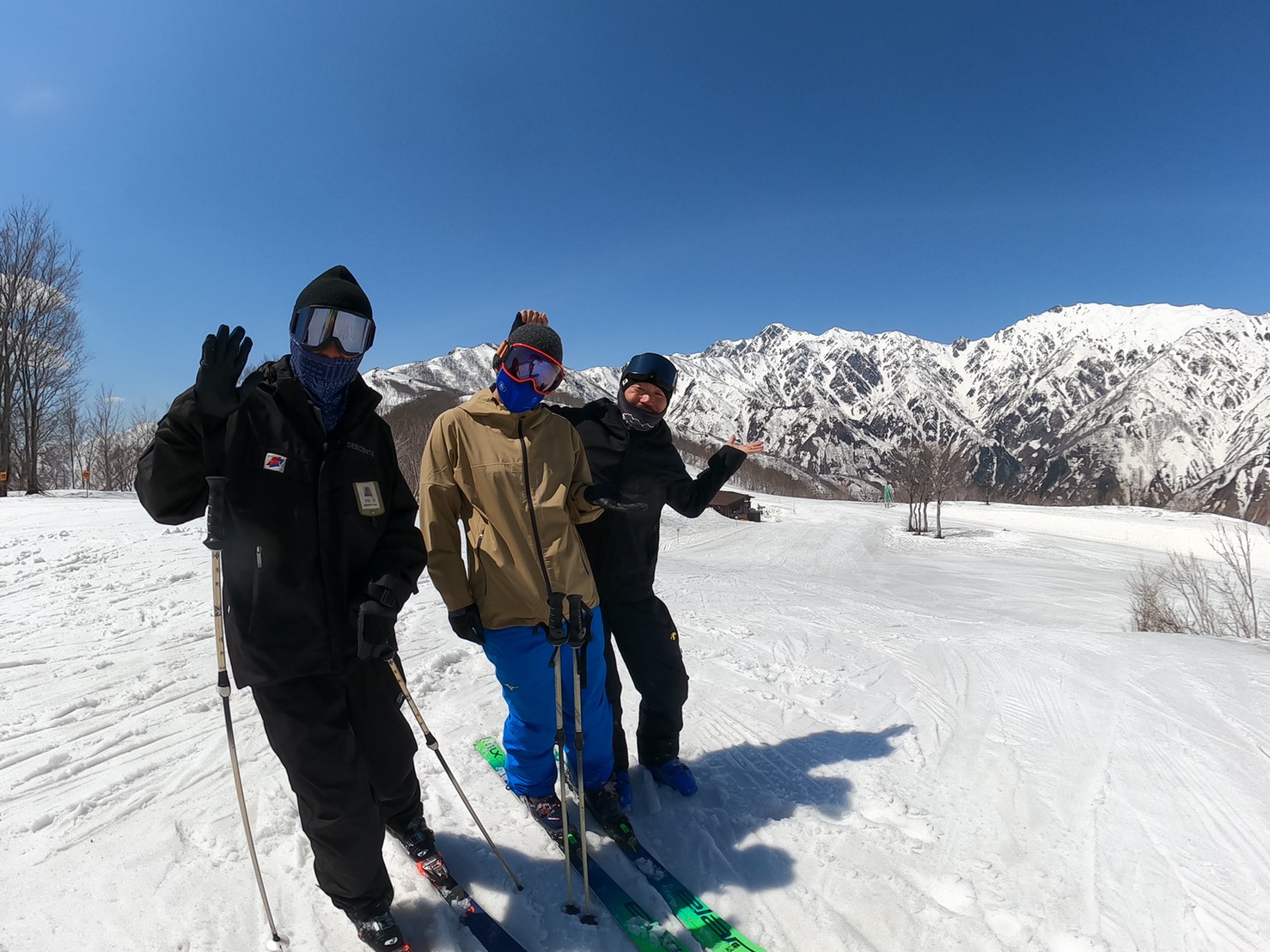 一緒に滑ってくれたのは五竜の貴公子末松くん、コブ王のうめちゃん、東京都技術選チーム監督の健一さん♪