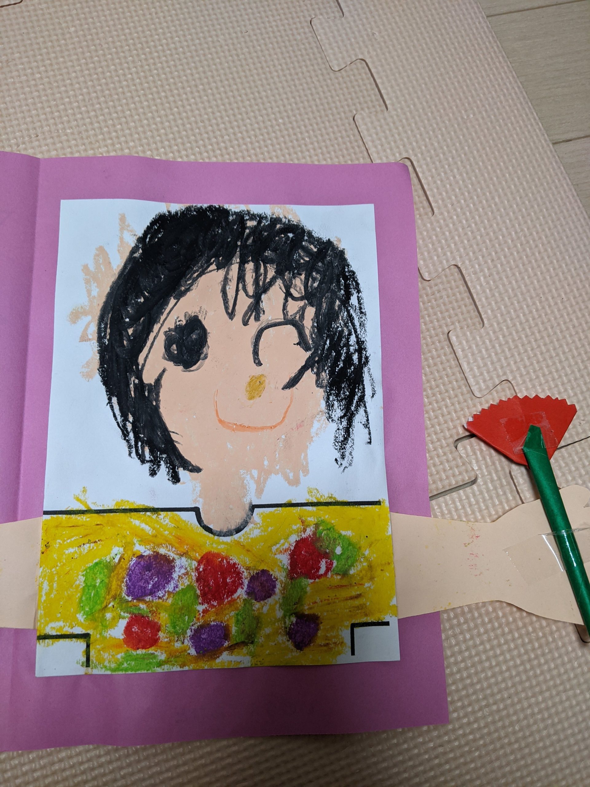 昨年は自粛期間ということで、幼稚園が6月から始まったので母の日の似顔絵は無かったですが、今年はいただいました😄