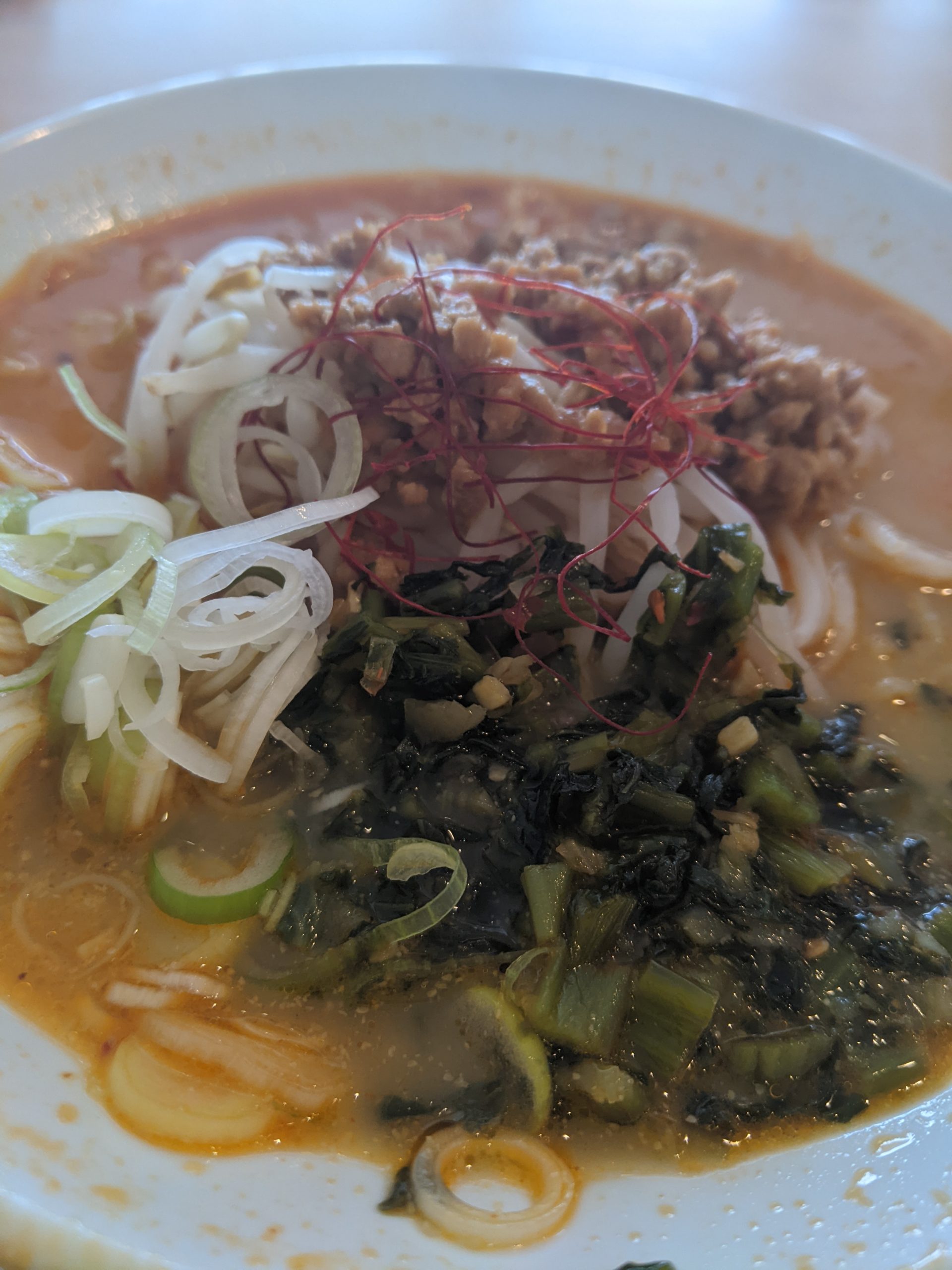 野沢温泉での昼食は「野沢菜入り担々麺」 ちょっとラー油を足して〜♪