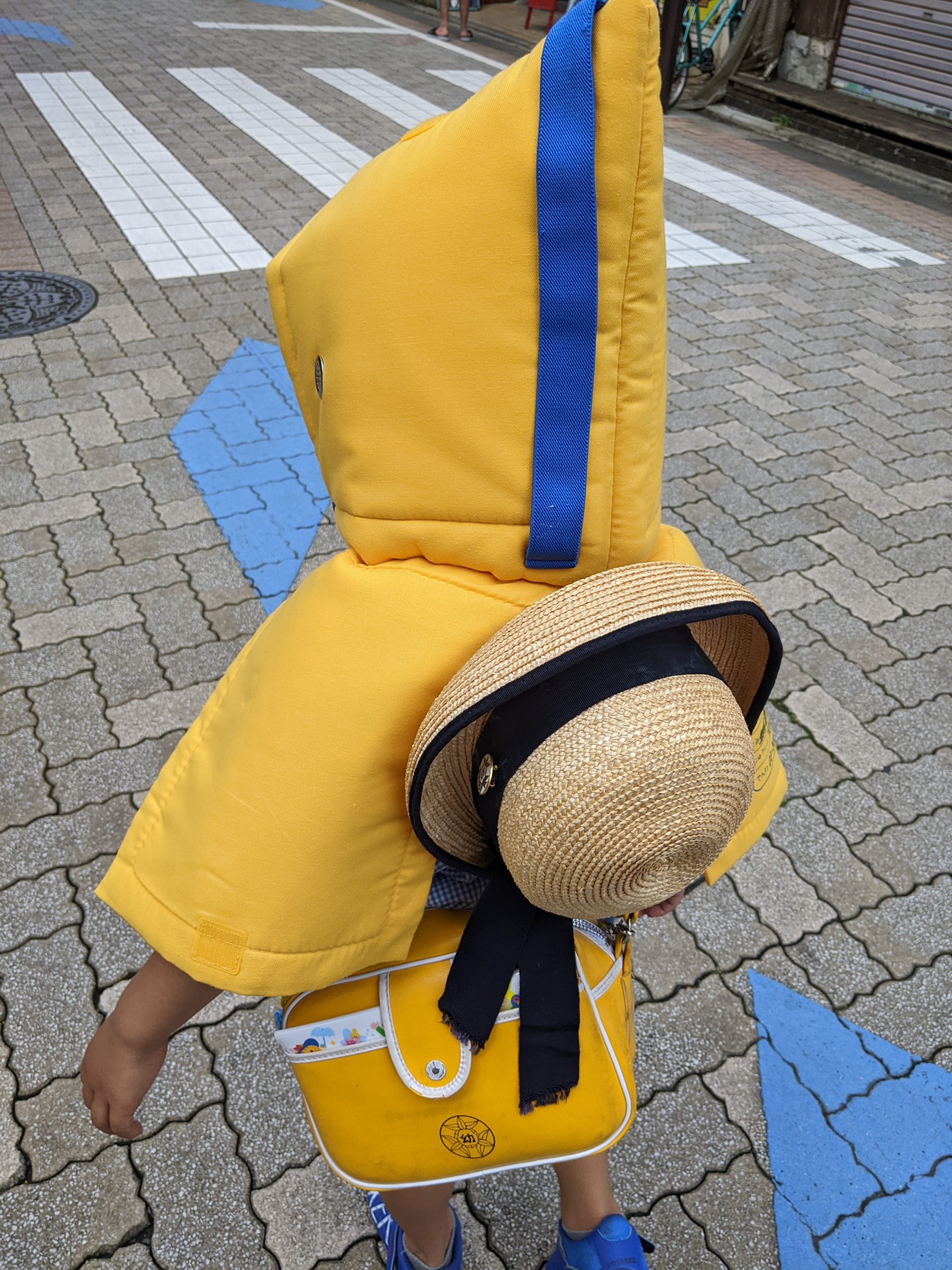 防災ずきんをかぶって歩く姿はかわいい😄
