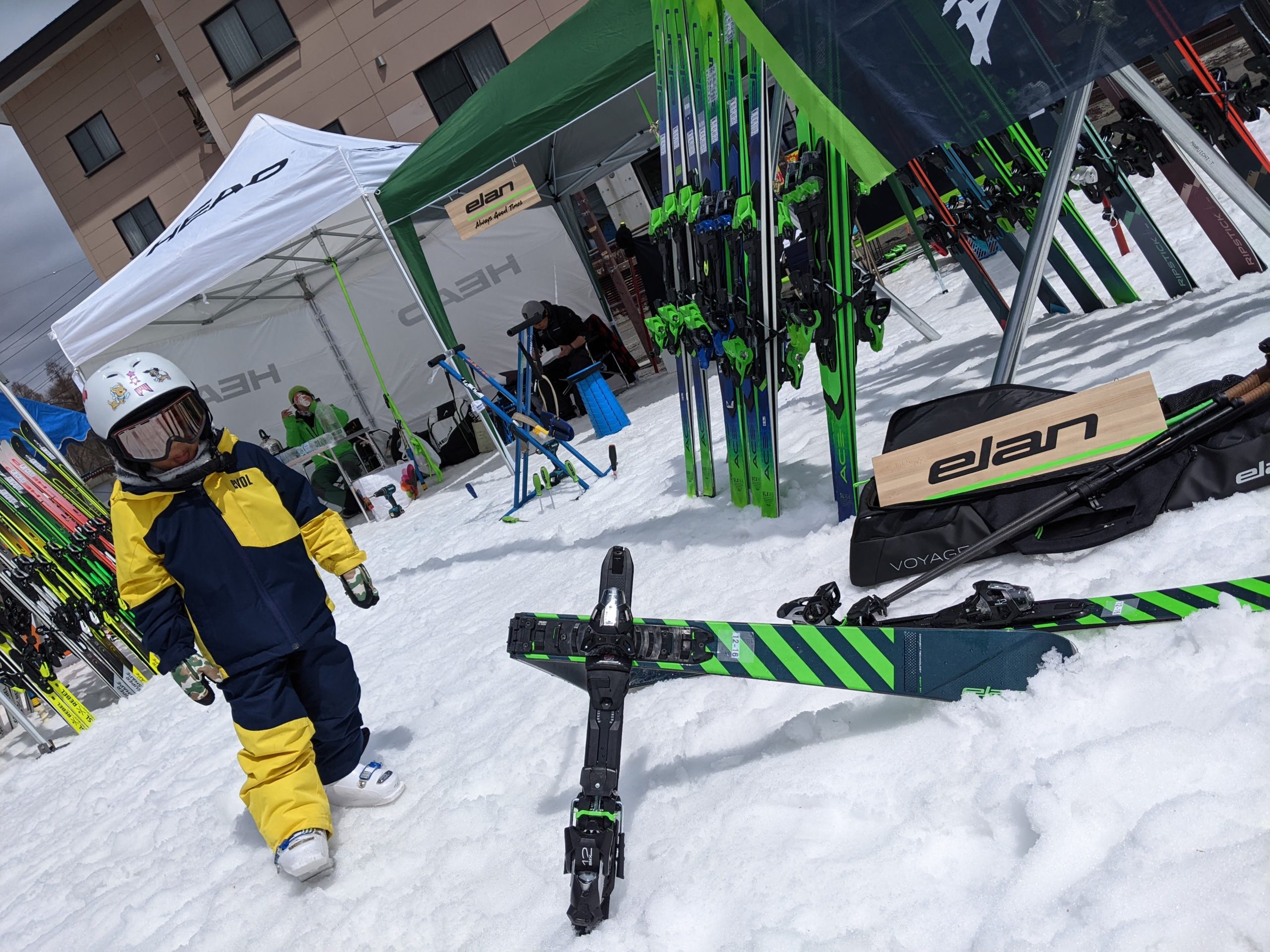 たくさんのスキー用品メーカーが集まり、スキーヤーのみなさんも集まりますね〜😄